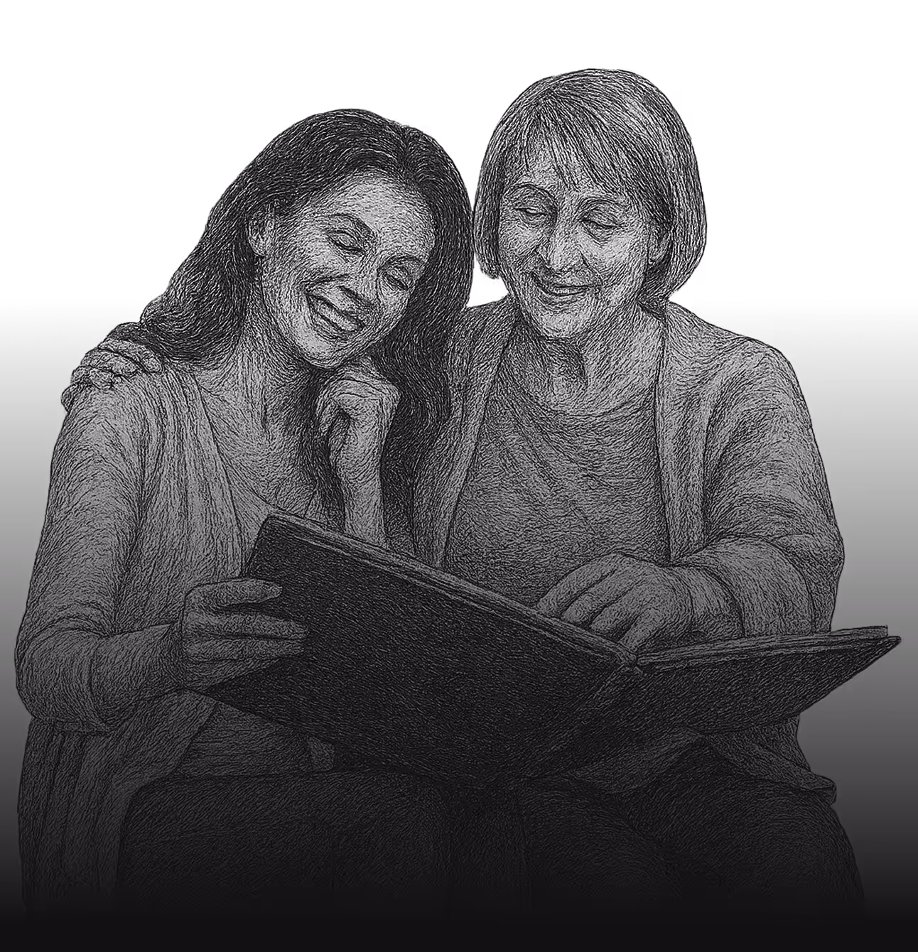 Thoughtful prompts guide you past the blank page. Share photos, videos, and even audio recordings. Optional AI assistance listens to your memories and suggests phrasing, always under your control